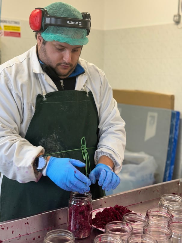 Una volta completata la fermentazione, pesiamo accuratamente i crauti e li invasiamo a mano. Infine, li sottoponiamo a una delicata pastorizzazione a bassa temperatura, preservando così la loro freschezza e il loro unico colore vibrante.